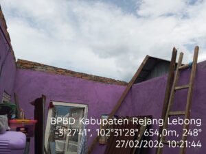 Ia menjelaskan, angin kencang yang terjadi sejak Kamis malam hingga Jumat dini hari (26–27/2) menyebabkan sejumlah kerusakan pada rumah warga. Di Gang Batara, Kelurahan Jalan Baru, Kecamatan Curup, satu unit rumah mengalami kerusakan pada bagian atap setelah terangkat angin.