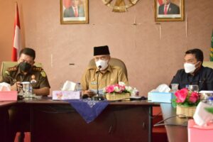 Media Center Rejang Lebong – Bupati Rejang Lebong (RL), Drs. Syamsul Efendi, MM, secara langsung mengikuti Rapat Koordinasi Penanganan Covid-19 Provinsi Bengkulu dengan Gubernur Bengkulu, Rohidin Mersyah, di Ruang Rapat Bupati, Selasa, (15/2) pagi.
