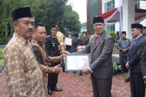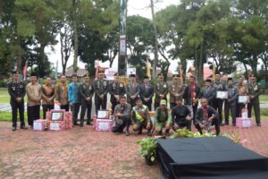 Usai upacara Bupati Rejang Lebong Drs. H. Syamsul Effendi,MM bersama Kapolres Rejang Lebong AKBP Juda Trisno Tampubolon, SH.,S.Ik,MH menyerahkan piagam penghargaan dan hadiah bagi pemenang lomba Siskamling. (Reporter Andi, Editor Aditya MCRL)