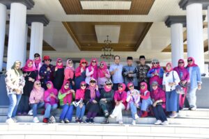 Sebelum mengunjungi kebun jeruk Chapari Buah di kawasan Suban Air Panas dan Danau Mas Harun Bastari, rombongan Lovely Moms Line Dance yang dipimpin Ny.Syafridawati Cahya Danis lebih dulu disambut Pjs. Bupati Rejang Lebong, Dr.H. Herwan Antoni, SKM, MKes, MSi di Pendopo Pat Petulai rumah dinas bupati, pukul 08.30 WIB.