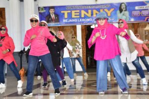 MEDIA CENTER REJANG LEBONG – Rayakan HUT ke-2, Lovely Moms Line Dance Provinsi Bengkulu gelar road show di Rejang Lebong, Minggu, (27/10).