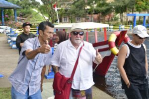 MEDIA CENTER REJANG LEBONG — Sore, Jumat 22 Agustus 2025, permukaan Danau Mas Harun Bastari di Kabupaten Rejang Lebong berkilau diterpa sinar matahari. Sebuah perahu motor perlahan melaju, membawa seorang wisatawan asing asal Inggris bernama Tom. Ditemani pemandu lokal, Tom menyusuri danau yang dikelilingi perbukitan hijau.