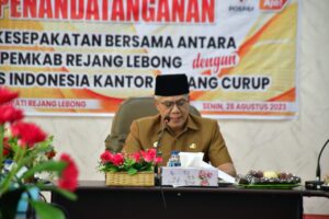 “Penandatanganan kesepakatan bersama ini, menjadi sarana untuk menjaga dan mempererat hubungan antara Pemerintah Kabupaten (Pemkab) Rejang Lebong dengan PT. Pos Indonesia Kantor Cabang Curup dalam hal pemanfaatan layanan jasa,” ujar Bupati, Senin (28/8).