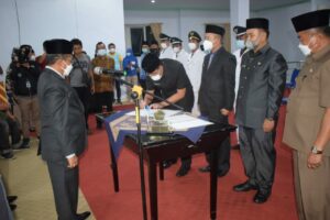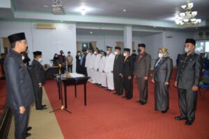 Rejang Lebong – Pemerintah Kabupaten (Pemkab) Rejang Lebong melaksanakan kegiatan pengangkatan penjabatan administrasi ke dalam jabatan fungsional melalui penyertaan di lingkungan pemerintah Kabupaten Rejang Lebong tahun 2021, di Ruang Pola Setda Kab. Rejang Lebong, Jumat malam (31/12).