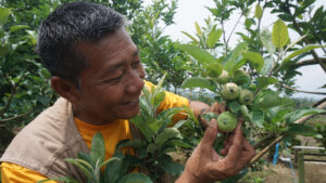 MEDIA CENTER REJANG LEBONG – Petani apel Desa Empat Suku Menanti, Sindang Dataran, Rejang Lebong, Suliadi bukan hanya sabar. Tapi juga ulet dan pantang menyerah. Betapa tidak. Satu tahun setelah 1000 batang bibit apel ditanam di lahan seluas 1 hektare tahun 2018, hampir 50 persen pohon apel mati.