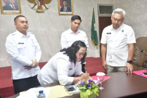 Selain MoU pinjam pakai aset, Plt. Kepala Badan Kesatuan Bangsa dan Politik Kabupaten Rejang Lebong Yulieni, S.Sos., M.M. bersama Kepala BNN Provinsi Bengkulu juga menandatangani MoU hibah perlengkapan meubelair dan barang elektronik sebagai penunjang operasional BNNK.